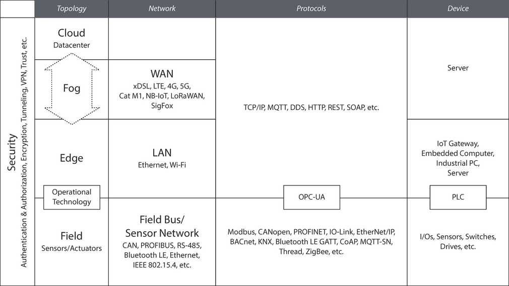 Dem Thema Sicherheit kommt beim Edge Computing eine wichtige Rolle zu. Im industriellen Umfeld findet Edge Computing zwischen Cloud und der Feldebene statt, also am Übergang zwischen IT und OT (Operational Technology, also SPS und SCADA Systeme).