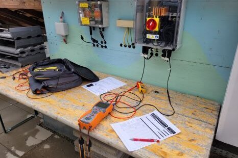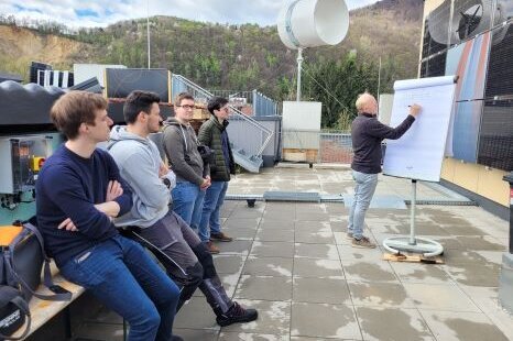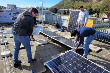 Die Teilnehmer:innen montierten in Kleingruppen PV-Module für verschiedene Strings sowie unterschiedlichen Ausrichtungen und Dachbefestigungen. Neben der Installation und Prüfung gemäß geltenden Normen und Richtlinien wurden auch die Gefahren der DC-Anlagen anhand von Lichtbögen an vermeintlichen Kabelöffnungen demonstriert. Nach der normgemäßen Inbetriebnahme-Messungen wurde die PV-Anlage mit unterschiedlichen Wechselrichtern und Smart-Metern verbunden, wobei auch auf das enorme Potenzial der Eigennutzung von PV-Energie eingegangen wurde.