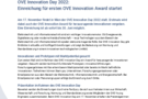 Presseinformation 07.04.2022 OVE Innovation Day 2022: Einreichung für ersten OVE Innovation Award startet Am 17. November findet in Wien der OVE Innovation Day 2022 statt. Erstmals wird dabei auch…