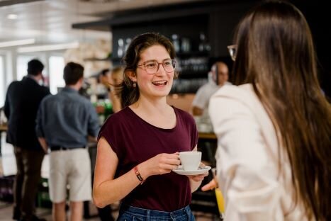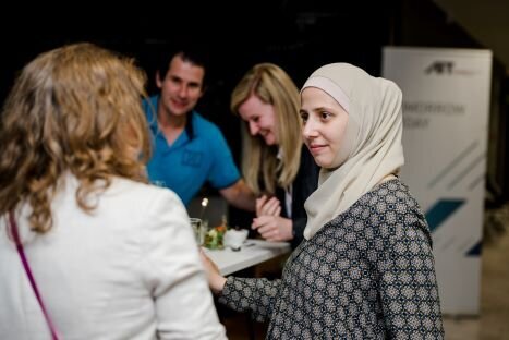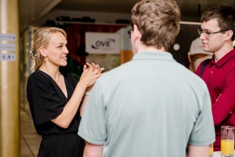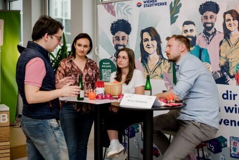 Beim gemütlichen „Netzwerkspritzer“ am Abend konnten die Young Engineers in ungezwungener Atmosphäre mit Expert:innen aus dem OVE-Netzwerk ins Gespräch kommen. Hier wurden konkrete Karrieremöglichkeiten und potentielle gemeinsame Projekte besprochen. Zudem gab es die Möglichkeit bei Tina Landreau vom TU Career Center einen CV-Check durchzuführen und sich zu persönlichen Karrierefragen beraten zu lassen. Versorgt wurden die Teilnehmer:innen mit vegetarischen Köstlichkeiten des ÖBB Bistro.