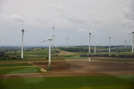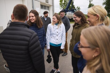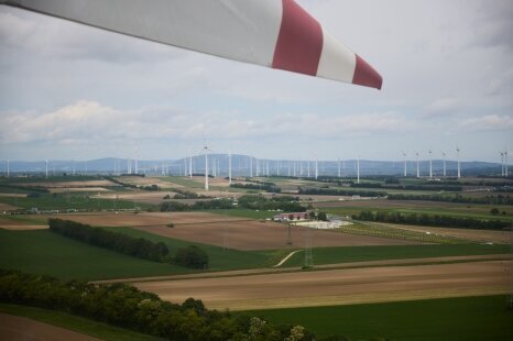 Am Nachmittag standen Besichtigungen im Energiepark Bruck/Leitha auf dem Programm. Auch dort dreht sich alles um Erneuerbare Energien und was es heißt, diese erlebbar zu machen. Bei Führungen durch die Anlagen konnten die Teilnehmer.innen zuerst bei der Biogasanlage erfahren, wie aus organischen Reststoffen grünes Biogas wird und anschließend durch die Ackerflächen des Sonnenfeldes streifen. Das spannende Agri-PV-Projekt „Sonnenfeld Bruck/Leitha“ zeigt, wohin der Weg der Erneuerbaren Energie führen soll: das Sonnenfeld ermöglicht eine effiziente Sonnenstromproduktion mit gleichzeitiger Nutzung des wertvollen Ackerbodens. Im Windpark hieß es schließlich hoch auf das Aussichtwindrad, wo alle Fragen rund um technische Details und effiziente Nutzung der Windenergie beantwortet wurden.