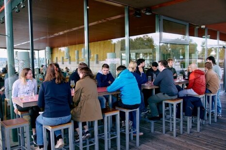 Beim abschließenden Ausklang am Neusiedlersee zeigte sich das Burgenland schließlich von der besten Seite. Bei Sonnenschein, kühlen Getränken und leckeren, regionalen Köstlichkeiten fand das zweite OVE Young Engineers Community Event in der Mole West ein passendes Ende, bevor es mit dem Bus wieder zurück nach Wien ging.