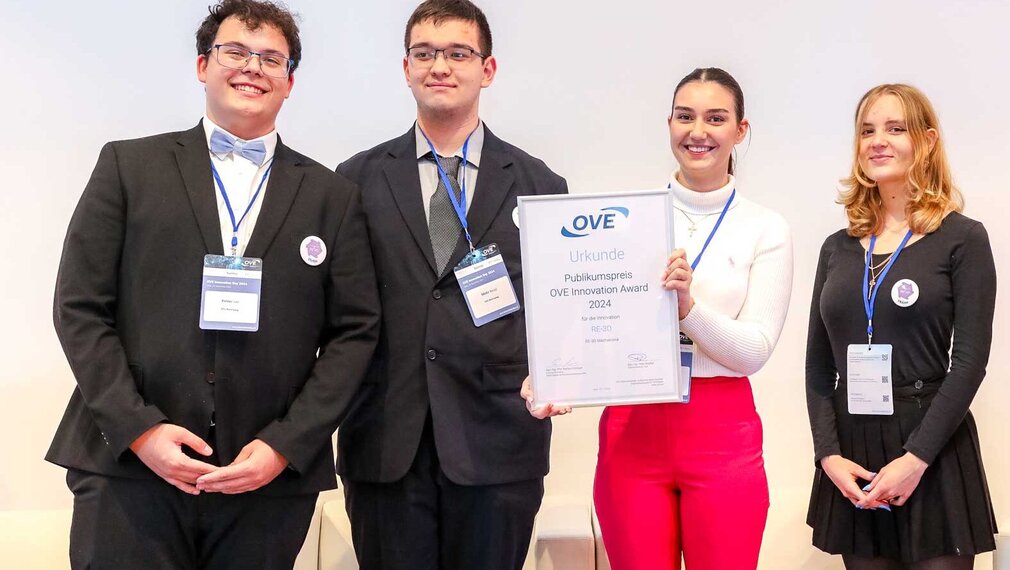 Neu war in diesem Jahr die Einführung eines Publikumspreises: Von der Jury nominierte Projekte wurden während des OVE Innovation Day in 60-sekündigen Pitches vorgestellt. Die meisten Stimmen erhielt eine Gruppe von Schüler:innen der HTL Wien 3 Rennweg für ihr Projekt zur Wiederverwertung von Abfällen aus fehlerhaften 3D-Drucken.