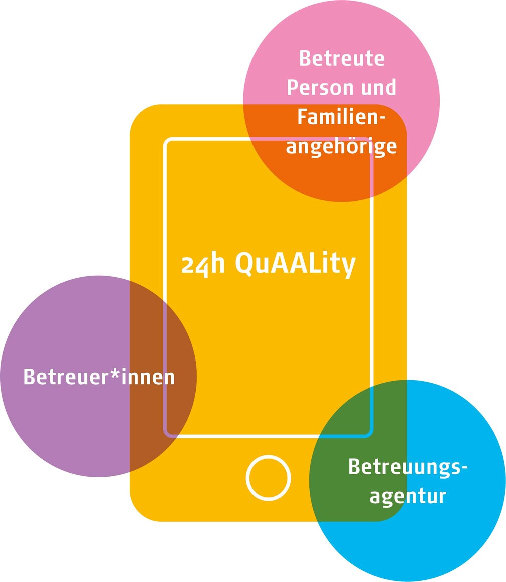 Ziel des Projektes 24h QuAALity ist die Entwicklung und Evaluation einer verteilten Client-Server Softwarelösung zur Qualitätssicherung der 24h-Betreuung. Die Applikationssoftware für die Personenbetreuer/innen enthält ein Informations- und Weiterbildungsportal zu wiederkehrenden Betreuungssituationen in deutscher, slowakischer, ungarischer und rumänischer Sprache, eine elektronische Betreuungsdokumentation zur Unterstützung der Qualitätssicherung und Transparenz sowie ein integriertes Notfallmanagement, um professionell auf auftretende Notfallsituationen reagieren zu können.