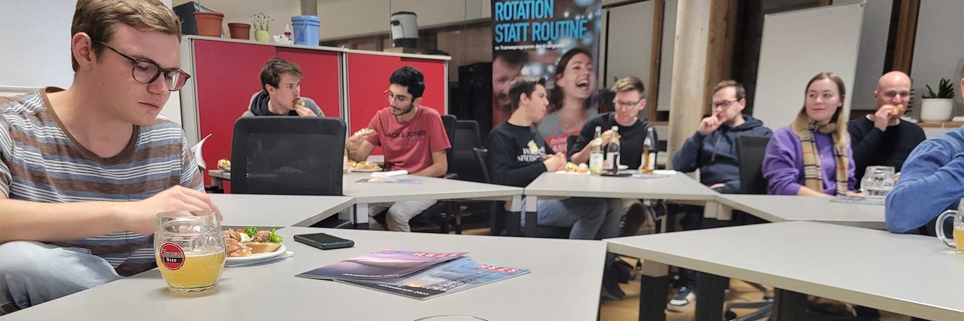 Abgerundet wird der Abend durch Getränke und belegte Brötchen in entspannter Atmosphäre.