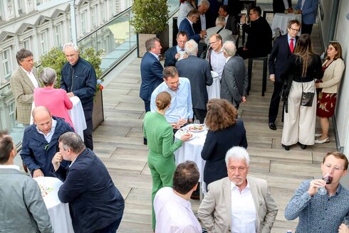 Direkt im Anschluss an die Generalversammlung fand zum ersten Mal das OVE-Sommerfest in unseren Räumlichkeiten sowie der Dachterrasse statt. Trotz frischer Temperaturen war das Open House ein voller Erfolg: Unter dem Motto „Sommer, Sonne, Netzwerklaune“ wurde bei Prosecco, Cocktails, DJ-Beats und Buffet gelacht, genetzwerkt und gefeiert. Für besondere Erinnerungen sorgte unsere Fotobox mit vielen unterhaltsamen Schnappschüssen.