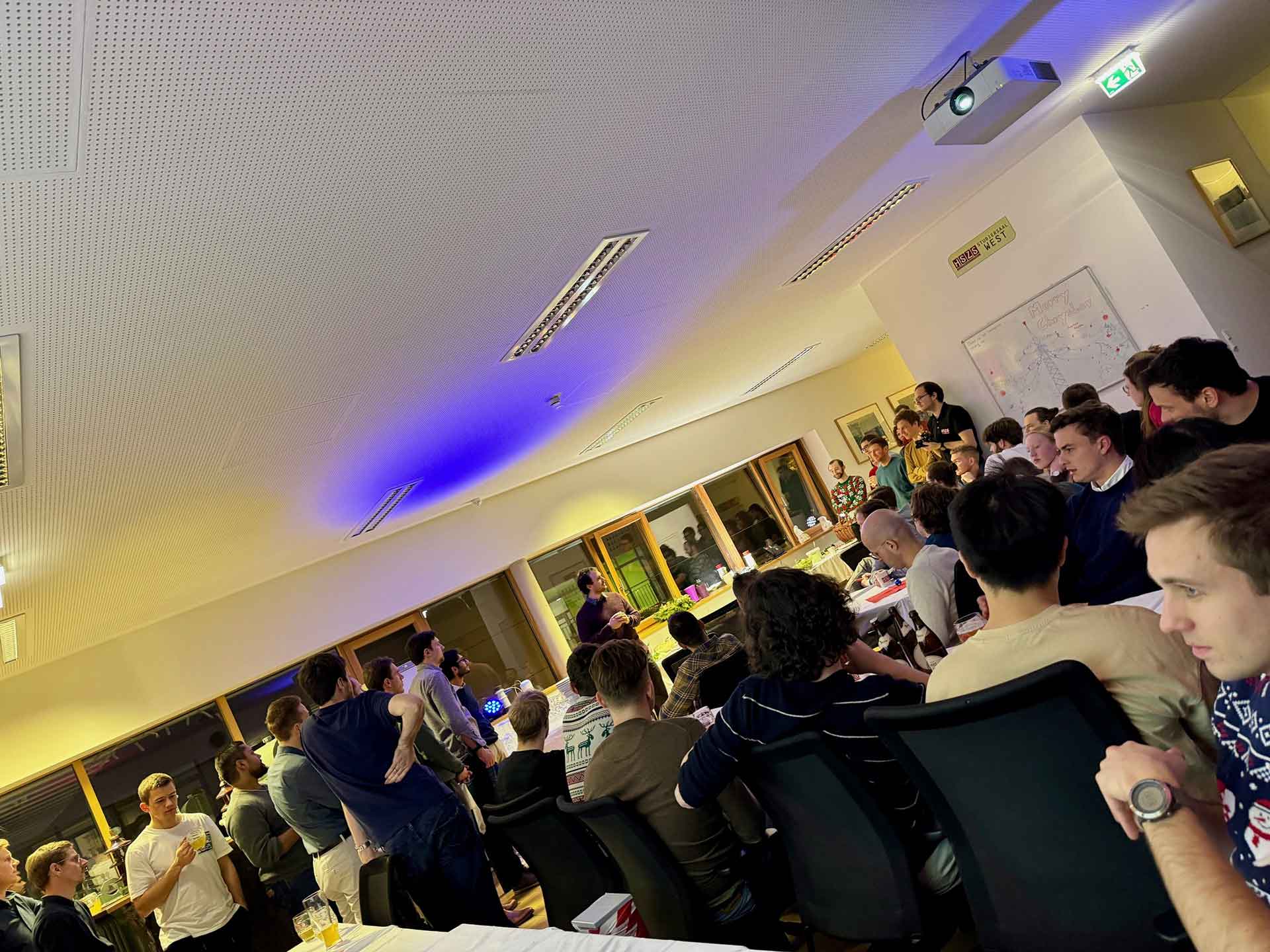 Ohne Spielplan und Zeitdruck entwickelte sich rasch eine lebendige Mischung aus Gesprächen, Lachen und lockerem Netzwerken. Viele zog es aufgrund der winterlichen Temperaturen bald ins gemütliche Unterdeck, wo bis in den Abend hinein gegessen, getrunken und angeregt diskutiert wurde. Auch das Young Engineers‑Vorstandsteam nutzte die Gelegenheit, um über geplante Aktivitäten und Veranstaltungen für das Jahr 2025 zu informieren.