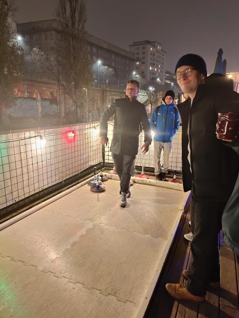 Am Pool-Deck traf man sich zum gemeinsamen Eisstock-Schießen, doch auf Instruktionen, fixe Matches oder gar einen Meistertitel wurde verzichtet. Statt Wettkampf hieß es: Ankommen, plaudern, vernetzen und gemeinsam feiern. Bei Glühwein, Punsch und Katoffelpuffern nutzten die anwesenden Young Engineers die Gelegenheit, sich in entspannter Atmosphäre auszutauschen und neue Kontakte zu knüpfen.
