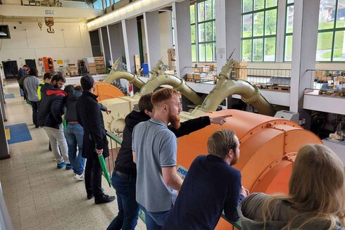 Im Kraftwerkshaus konnten die Young Engineers eine der Pump-Turbinen in Francis-Bauweise bei einer Revision besichtigen.