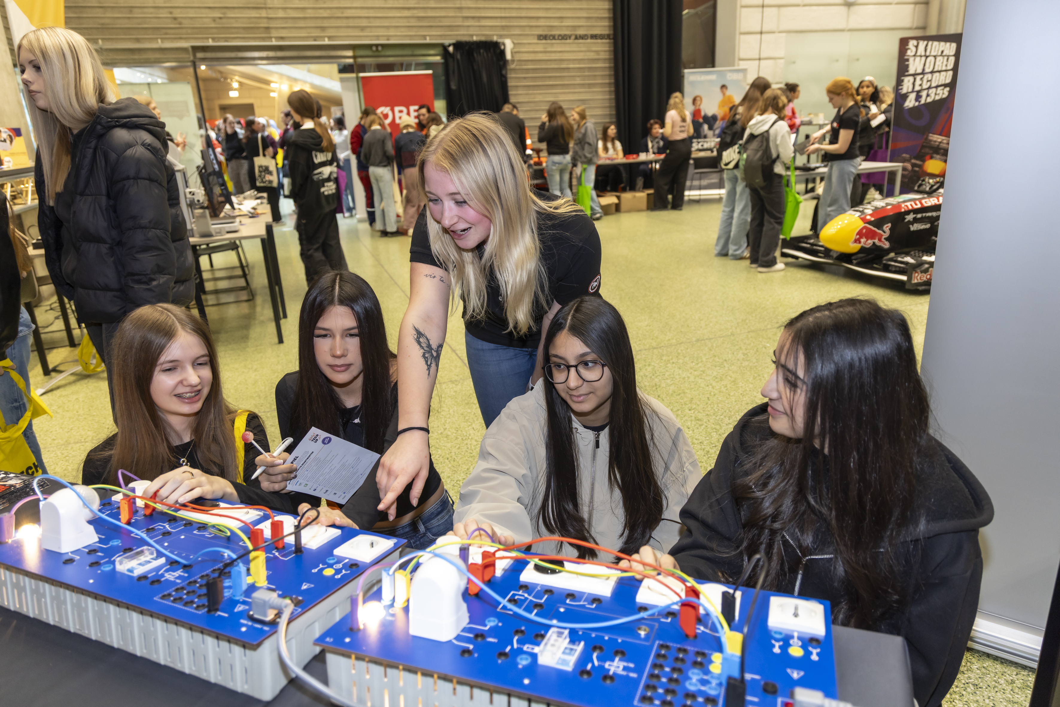 Die vierte Ausgabe von Girls! TECH UP in Graz brachte einen Teilnehmerinnenrekord: Mehr als 600 Schülerinnen der Unter- und Oberstufe waren diesmal beim Erlebnistag des OVE Österreichischer Verband für Elektrotechnik mit dabei. An zahlreichen Mitmachstationen konnten sie die Technologien der Zukunft erleben und sich über Berufe in der Elektro- und Informationstechnik informieren.