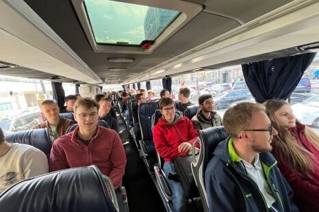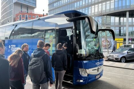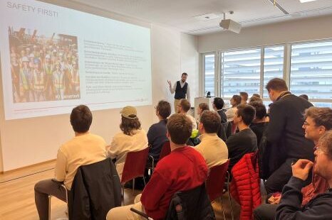 Vom Treffpunkt am Wiener Hauptbahhof wurden die Teilnehmer:innen von einem eigens organisierten Bus der Wiener Linien abgeholt und zur Unternehmenszentrale der Wiener Netze, dem Smart Campus beim Gasometer chauffiert. Florian Ainhirn, Netztechnik-Experte und Michael Klein, Hochspannungsreferent und technischer Projektleiter bei Wiener Netze, nahmen die Studierenden und Young Professionals in Empfang und präsentierten einige spannende Infos über den Wiener Kombinetz-Betreiber.