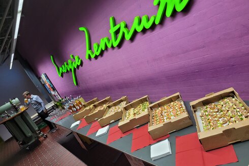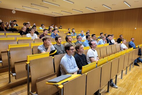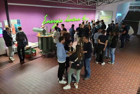 Im Anschluss an die Vorträge traf man sich schließlich vor dem Hörsaal für Speis und Trank, womit das Fachsimpeln zur Regelungstechnik beginnen und der Abend langsam sein Ende finden konnte.
