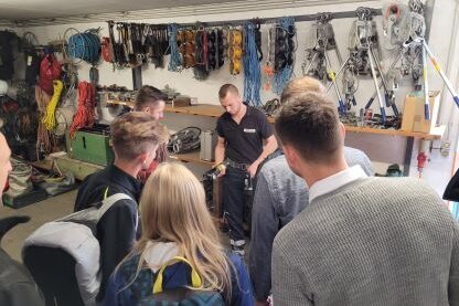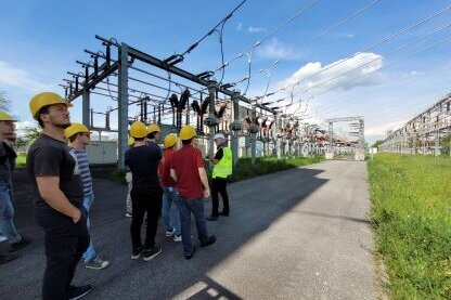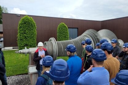Neben der Besichtigung von diversen 110-kV-Komponenten am Gelände und im Lager mit fachkundigen Erklärungen von Mitarbeitern der 110-kV Montage-Abteilung wurde auch ein Maststeigen am Freigelände durchgeführt. Zudem wurden auch weitere praxisbezogene Punkte, wie das Abisolieren von Niederspannungs-Energiekabel und das Klemmen von Mittelspannungsleiterseilen praktisch durch eigenständiges Probieren versucht. Nach dem Mittagessen in der Kantine in der Außenstelle in Gmunden ging es am Nachmittag weiter mit der Fahrt nach Timelkam zur Besichtigung des Gas- und Dampfkraftwerk (GuD) und Biomasse Kraftwerk. Die GuD-Anlage besitzt zudem mit einer Leistung von 420 MW im Bereich der Erzeugung GmbH der Energie AG einen erheblichen Anteil an der installierten Gesamtleistung aller Kraftwerke. Im Seminarraum der Kraftwerksanlage erhielten die OVE Young Engineers im Vorfeld einen speziellen Vortrag über die Geschichte des Standortes mit vielen interessanten technischen Informationen über die Anlage. Danach ging es in die Kraftwerksanlage zu einer kleinen Führung mit entsprechenden Erklärungen zu diversen Anlagenkomponenten. Der ereignisreichen Tag fand einen schönen Ausklang beim gemeinsamen Abendessen und einer kleinen Lokal-Tour durch Linz.