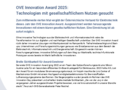 Zum mittlerweile vierten Mal vergibt der OVE dieses Jahr den OVE Innovation Award. Ausgezeichnet werden herausragende Innovationen mit einem klaren gesellschaftlichen Nutzen. Eine Einreichung ist ab…