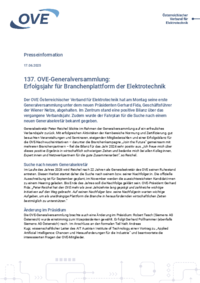 Presseinformation 17.06.2025 137. OVE-Generalversammlung: Erfolgsjahr für Branchenplattform der Elektrotechnik Der OVE Österreichischer Verband für Elektrotechnik hat am Montag seine erste…