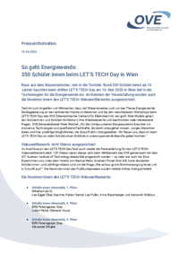 Presseinformation 19.05.2025 So geht Energiewende: 350 Schüler:innen beim LET’S TECH Day in Wien Raus aus dem Klassenzimmer, rein in die Technik: Rund 350 Schüler:innen ab 10 Jahren tauchten beim…