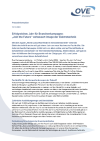 Presseinformation 10.12.2024 Erfolgreiches Jahr für Branchenkampagne: „Join the Future“ verbessert Image der Elektrotechnik Mit dem Appell „Werde Zukunftserfinder:in mit Elektrotechnik!“ wirbt die…