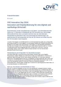 Presseinformation 09.10.2024 OVE Innovation Day 2024: Innovation und Standardisierung für eine digitale und nachhaltige Wirtschaft Branchentrends und die Zukunftsthemen in der Elektro- und…