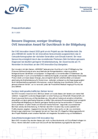 Presseinformation 20.11.2025 Bessere Diagnose, weniger Strahlung: OVE Innovation Award für Durchbruch in der Bildgebung Der OVE Innovation Award 2025 geht an ein Projekt aus der Medizintechnik: Die…