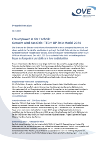 Presseinformation 02.05.2024 Frauenpower in der Technik: Gesucht wird das Girls! TECH UP-Role Model 2024 Die Branche der Elektro- und Informationstechnik braucht dringend Nachwuchs. Vor allem…
