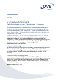 Presseinformation 21.03.2024 In Echtzeit am Netzwerkrand: OVE-IT-Kolloquium zum Thema Edge Computing Der weltweite Datenaustausch nimmt massiv zu. Um ihn weiterhin bewältigen zu können, ist ein…