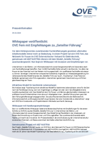 Presseinformation 29.02.2024 Whitepaper veröffentlicht: OVE Fem mit Empfehlungen zu „Geteilter Führung“ Vor dem Hintergrund des zunehmenden Fachkräftemangels gewinnen alternative Arbeitsmodelle…
