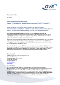Presseinformation 05.03.2024 Elektrotechnische Normung: Neuer Präsident für Nationalkomitee von CENELEC und IEC Josef Feichtinger (Fronius) ist neuer Präsident des österreichischen Nationalkomitees…