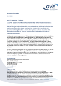 Presseinformation 25.01.2024 OVE Service GmbH: ALDIS übernimmt deutschen Blitz-Informationsdienst Die OVE Service GmbH mit dem Blitz-Informationsdienst ALDIS hat ihr Service über die Grenzen…