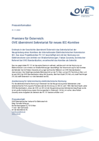 Presseinformation 21.11.2023 Premiere für Österreich: OVE übernimmt Sekretariat für neues IEC-Komitee Erstmals in der Geschichte übernimmt Österreich das Sekretariat bei der Neugründung eines…