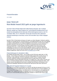 Presseinformation 13.11.2023 Girls! TECH UP: Role Model Award 2023 geht an junge Ingenieurin Das Girls! TECH UP-Role Model 2023 heißt Hüzüme Erkaptan. Die 21-jährige Wienerin arbeitet als Project…