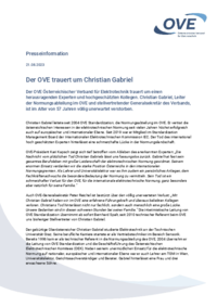 Presseinformation 21.08.2023 Der OVE trauert um Christian Gabriel Der OVE Österreichischer Verband für Elektrotechnik trauert um einen herausragenden Experten und hochgeschätzten Kollegen. Christian…