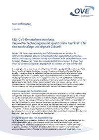 Presseinformation 23.06.2023 135. OVE-Generalversammlung: Innovative Technologien und qualifizierte Fachkräfte für eine nachhaltige und digitale Zukunft Bei der 135. Generalversammlung des OVE…