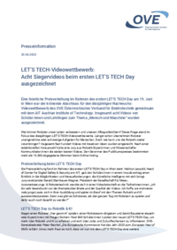 Presseinformation 20.06.2023 LET’S TECH-Videowettbewerb: Acht Siegervideos beim ersten LET’S TECH Day ausgezeichnet Eine feierliche Preisverleihung im Rahmen des ersten LET’S TECH Day am 19. Juni in…