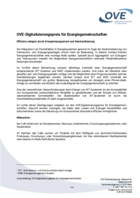 OVE-Digitalisierungspreis für Energiegemeinschaften Effizienz steigern durch Energiemanagement und Standardisierung Die Integration von Flexibilitäten in Energiesystemen gewinnt im Zuge der…