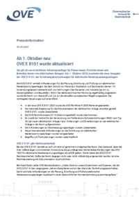 Presseinformation 29.09.2025 Ab 1. Oktober neu: OVE E 8101 wurde aktualisiert Sie gilt als unverzichtbare Arbeitsgrundlage für Planer:innen, Errichter:innen und Betreiber:innen von elektrischen…