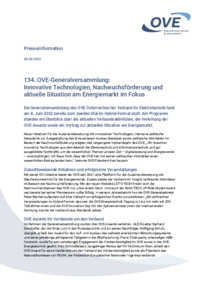 Presseinformation 09.06.2022 134. OVE-Generalversammlung: Innovative Technologien, Nachwuchsförderung und aktuelle Situation am Energiemarkt im Fokus Die Generalversammlung des OVE Österreichischer…