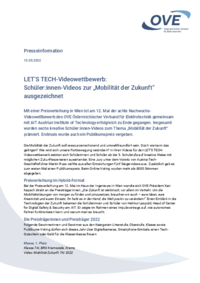 Presseinformation 13.05.2022 LET’S TECH-Videowettbewerb: Schüler:innen-Videos zur „Mobilität der Zukunft“ ausgezeichnet Mit einer Preisverleihung in Wien ist am 12. Mai der achte…