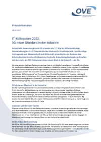 Presseinformation 18.05.2022 IT-Kolloquium 2022: 5G neuer Standard in der Industrie Industrielle Anwendungen von 5G standen am 17. Mai im Mittelpunkt einer Veranstaltung des OVE Österreichischer…