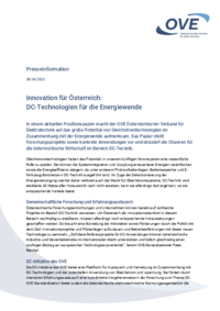Presseinformation 28.04.2022 Innovation für Österreich: DC-Technologien für die Energiewende In einem aktuellen Positionspapier macht der OVE Österreichischer Verband für Elektrotechnik auf das…