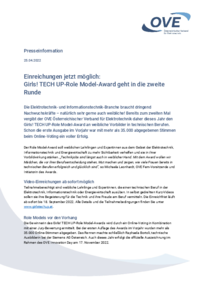Presseinformation 25.04.2022 Einreichungen jetzt möglich: Girls! TECH UP-Role Model-Award geht in die zweite Runde Die Elektrotechnik- und Informationstechnik-Branche braucht dringend…
