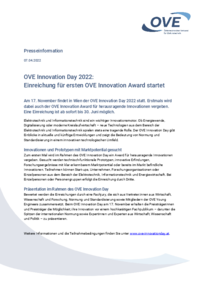 Presseinformation 07.04.2022 OVE Innovation Day 2022: Einreichung für ersten OVE Innovation Award startet Am 17. November findet in Wien der OVE Innovation Day 2022 statt. Erstmals wird dabei auch…
