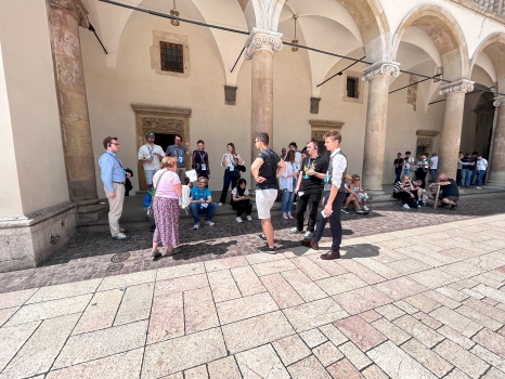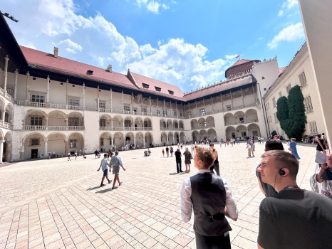 Am Morgen besuchten die Teilnehmer:innen den ASTOR Showroom, wo Automatisierungslösungen, Robotik und industrielle Digitalisierung im Fokus standen. ASTOR gilt in Polen als Innovationsmotor für Industrie 4.0. Anschließend führte der Weg zum Wawel-Schloss, einer der bedeutendsten Sehenswürdigkeiten Polens. Die ehemalige Königsresidenz hoch über der Weichsel beeindruckte mit Architektur, Kunst und Geschichte.