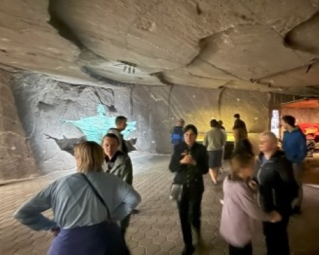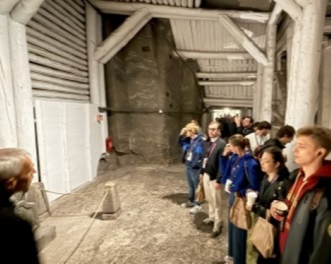 Nach dem Frühstück fuhr die Gruppe zur legendären Wieliczka Salzmine, die seit dem 13. Jahrhundert in Betrieb war. In über 100 Metern Tiefe besichtigten die Teilnehmer:innen riesige Kammern, unterirdische Kapellen und kunstvoll geschnitzte Salzskulpturen – ein beeindruckendes Beispiel früher Ingenieurskunst.