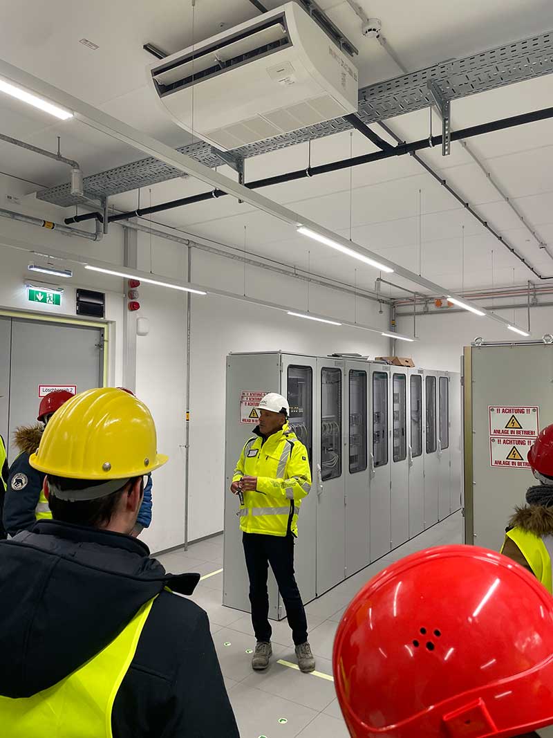 Dieses Werk wird künftig den Lichtbogenofen der voestalpine Stahl Donawitz mit Energie versorgen und soll planmäßig im Juni des kommenden Jahres in Betrieb gehen. Nach einer Einführung im Baucontainer führten die Projektleiter der Primär- und Bautechnik über die Baustelle. Dort konnten die Teilnehmenden unter anderem Trafofundamente, erste GIS-Leistungsschalter und zahlreiche weitere Anlagenkomponenten besichtigen.