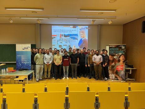 Genau eine Woche später, am 13. März fand auch die regionale Mitgliederversammlung der OVE Young Engineers Graz statt. Neben vielen langjährigen Young Engineers waren auch einige Neumitglieder unter den Teilnehmer:innen im Hörsaal 1 an der TU Graz dabei.